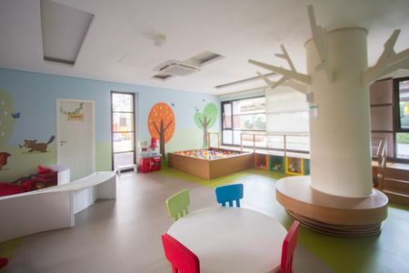 Playground, Piscina, Quadra esportiva, Academia, Salão de festas, Sauna, Lavanderia no prédio, Brinquedoteca, Corrimão, Piso tátil, Rampas de acesso, Salão de jogos, Vaga de garagem acessível, Área verde, Elevador, Portaria 24h