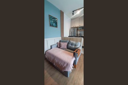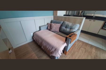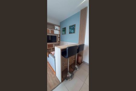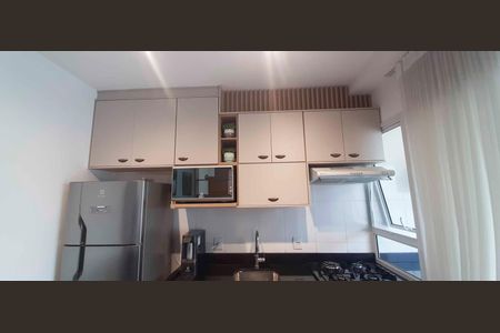 Apartamento com 37m²1 dormitoriosala ampliada e aconcheganteCozinha com armarios planejados, fogão cooktop, micro-ondas, geladeira, mesa de vidro e balcã[LINK_REMOVIDO] ampla e espaçosaSacada envidraçada e com persianas