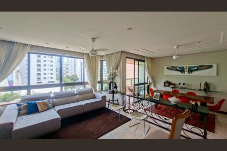 Apartamento de alto padrão no coração da Savassi, com 161 m², 4 quartos, sendo 2 suítes, e 3 vagas de garagem livres. Varanda independente, lavabo elegante e cozinha em granito com armários. Área de serviço ampla, com despensa e DCE. Área íntima com piso em tábua corrida de ipê, suíte máster com closet e hidromassagem e aquecimento central nos banhos. Prédio com lazer completo, portaria 24h, hall social decorado e jardins que garantem privacidade. Totalmente arejado e em localização nobre.