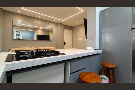 Apto reformado modernizado e automatizado. Iluminação toda em perfil de ledes. Sistema aquecedor com agua quente e fria nas torneiras. Sistema de ducha registro água quente fria. Portobello em todo apto . Gesso em todo apartamento Área de box com 2 metros de [LINK_REMOVIDO] hidráulica de agua, esgoto e elétrica novo. Apto mobiliado