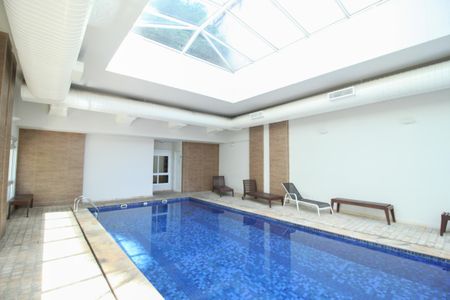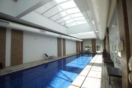 Tem piscina aquecida coberta,deposito na garagem, varanda, academia,sauna