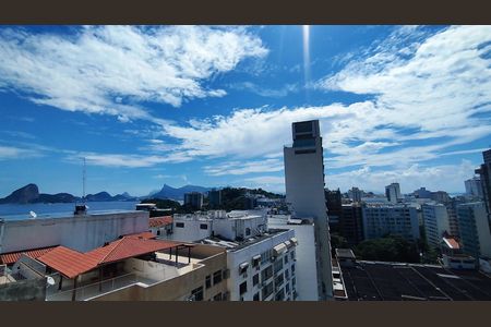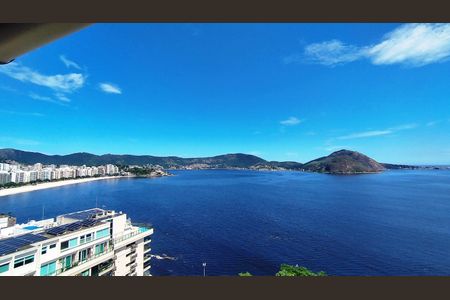 Excelente apartamento andar alto, claro e muito arejado, montado, vista deslumbrante do mar, composto por sala ampla em dois ambientes, 1 quarto com armário planejado, banheiro social com blidex e armário, cozinha com armários planejados, área e banheiro de serviço. 1 [LINK_REMOVIDO]édio com churrasqueira na cobertura com vista para a Praia de Icarai e do Pão de Açucar, salão de festas e portaria 24h.