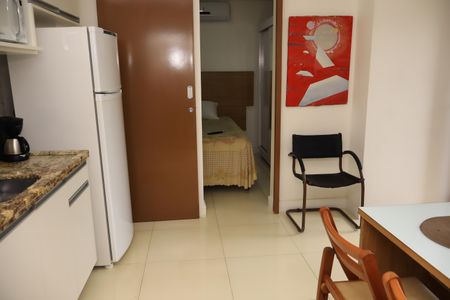 Com: forno, cooktop, geladeira, cama, micro-ondas.