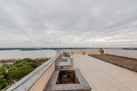 Apartamento duplex todo mobiliado. Condomínio com mercadinho, lavanderia, terraço com vista para o Guaiba.