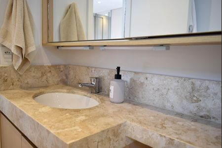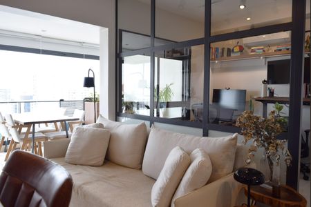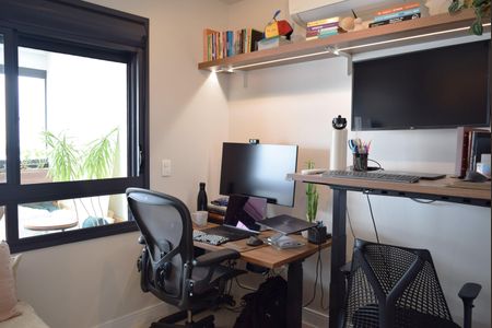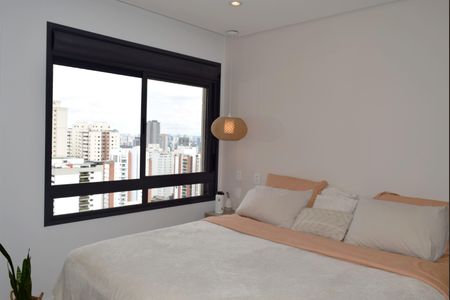 Excelente apartamento moderno em andar alto, com vista deslumbrante de Sao Paulo. Em uma localização privilegiada, possui area de lazer completa, depósito privativo e 1 vaga de garagem. Uma suíte ampla com cama King e espaço make, 2 banheiros, quartoescritório de vidro, cozinha integrada, varanda ampliada e area de serviço. Ar-condicionado e aquecedor Fujitsu.