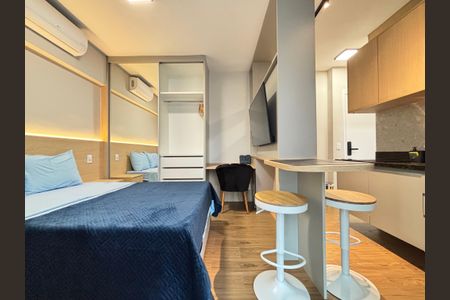 Localizado no charmoso bairro de Indianópolis, este studio oferece uma experiência de moradia prática e confortável. Com 25 metros quadrados, o espaço é ideal para quem busca um ambiente compacto e funcional. O imóvel é mobiliado, proporcionando conveniência imediata para seus moradores. O condomínio conta com academia, permitindo que os residentes mantenham uma rotina de exercícios sem sair de casa. A localização é um dos grandes atrativos deste studio, com proximidades que facilitam o dia a dia. A estação Eucaliptos está a poucos minutos, garantindo fácil acesso ao transporte público. Para quem viaja com frequência, o Aeroporto de Congonhas (CGH) está nas redondezas, oferecendo comodidades para deslocamentos aéreos. A região também é rica em opções de lazer e compras, com o Shopping Ibirapuera nas proximidades, um destino ideal para compras e entretenimento. Além disso, o DeRose Method Moema, uma instituição renomada, está próximo, oferecendo oportunidades para aprendizado e desenvolvimento pessoal. Com um quarto disponível, este studio é perfeito para solteiros ou casais que buscam um espaço prático em uma localização privilegiada. Indianópolis é um bairro que combina tranquilamente o ritmo urbano com áreas residenciais, tornando-se uma escolha excelente para quem deseja viver em São Paulo. Este imóvel é uma oportunidade única para aqueles que valorizam praticidades e uma localização estratégica.