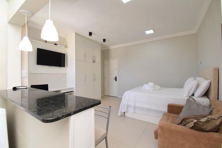 Studio novo, mobiliado, em localização privilegiada. Completo, roupa de cama, enxoval e utensílios.