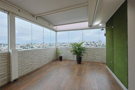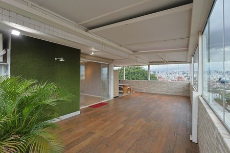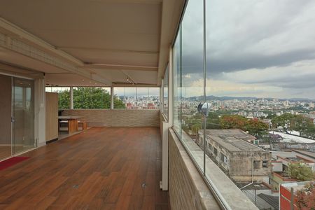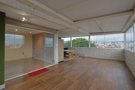Cobertura de 211m² no Padre Eustáquio. São 3 quartos com armários, sendo 1 suíte com ar-condicionado, 3 banheiros, sala para dois ambientes, cozinha com armários, cooktop e coifa, além de área de serviço e despensa. Escada em alvenaria com acabamento em mármore. No pavimento superior: sala climatizada, escritório, banheiro e ótima área externa com teto retrátil, fechamento em blindex e espaço gourmet com churrasqueira. Conta ainda com 3 vagas paralelas cobertas e box.