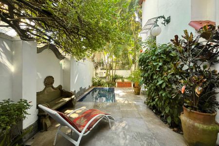 O imóvel tem um estilo Neocaliforniano, o jardim com piscina e churrasqueira tem boa integração com a sala que tem pé direito duplo (6 m), dando muita amplitude ao ambiente. Reforma recente voltada para sustentabilidade com caixa de água e cisterna para aproveitamento de água da chuva e placas solares para aquecimento de água com capacidade de 600 litros.