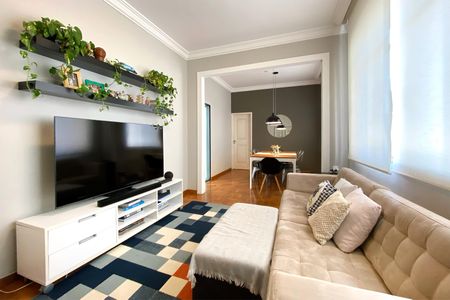 Este apartamento no bairro Serra está em uma localização privilegiada e se destaca pelos ambientes arejados, pé-direito alto e excelente iluminação natural, com incidência de sol da manhã. Situado no terceiro andar de um edifício sem elevador e com condomínio de baixo custo, o imóvel possui salas integradas e piso em taco de madeira preservado em toda a área social e íntima.A área íntima conta com três quartos: uma suíte equipada com ar-condicionado, um segundo dormitório com armários embutidos e um terceiro quarto já mobiliado como escritório. A cozinha e os banheiros possuem acabamento em cerâmica, sendo que a cozinha é integrada à área de serviço, que dispõe de um banheiro adicional. O imóvel conta ainda com uma vaga de garagem descoberta.