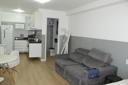Studio mobiliado com varanda, no sexto andar, em prédio na Vila Buarque com portaria 24 horas. Próximo ao Mackenzie, Santa Casa e em frente a praça. Com Geladeira, Cooktop, forno, microondas, televisão, sofá, mesa, cadeiras, armario e cama.