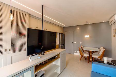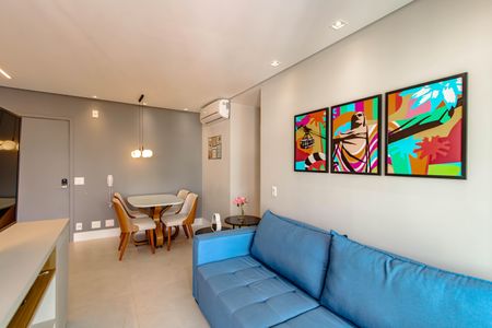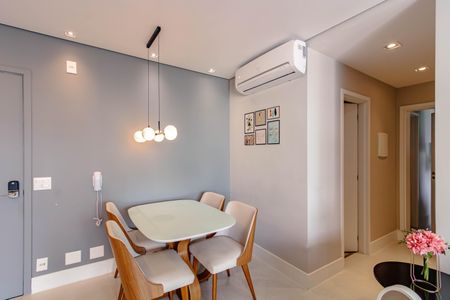Planta perfeita, com:Uma sala ampla e clara, para dois ambientes com vista gostosaLavaboVaranda por todo apartamento02 Suítes, sendo a principal enorme com closet maravilhosoCozinha linda totalmente planejada e integrada a salaLavanderiaAr condicionado na sala e nas duas suí[LINK_REMOVIDO] Vaga de garagemMuito bom gosto e praticidade!Prédio seminovo, descolado, com um lazer maravilhoso, incluindo:Piscina aquecida com borda infinita no térreo;Churrasqueiras com vista de tirar o fôlego no Roof