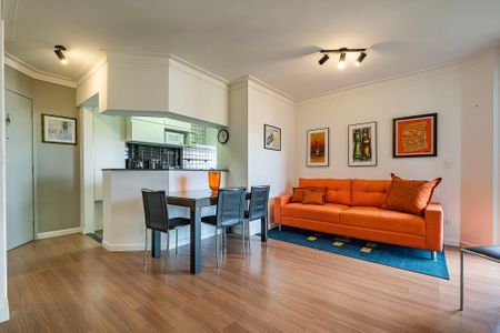 O IPTU 2026 está pago e não será cobrado do inquilino. O valor em 2026 foi de RS 170,00 mes. Apartamento totalmente reformado e mobilado e com eletrodomésticos modernos. Quarto Cama casal com criado mudo - cômoda - escrivaninha. Sala 2 sofás -um deles vira cama de casal quando aberto, mesa de jantar com 5 cadeiras - 2 mesas laterais. Cozinha com Cooktop 4 bocas a gás natural- forno elétrico embutido - geladeira , máquina de lavar e tanque. Há grande quantidade de armários embutidos no quarto e em toda cozinha também no banheiro com uma grande bancada em granito. Localizado em uma das ruas mais tranquilas e charmosas de Pinheiros , próximo ao metrô Oscar Freire e Clínicas. Ar condicionado na sala e no quarto. Piscina, salão de festas, academia e duas vagas amplas e demarcadas para carros.