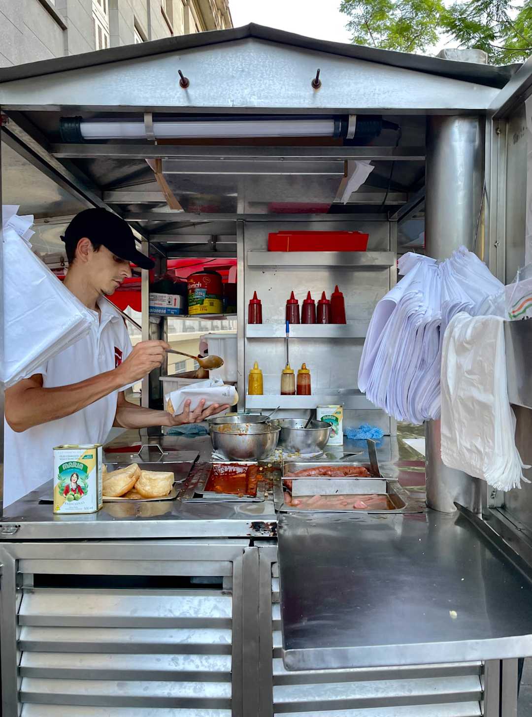 Para quem chega à carrocinha, que funciona de manhã à noite, cada pedido é especial, o que constrói a relação de fidelidade dos clientes – basta solicitar sua versão preferida para o atendente.